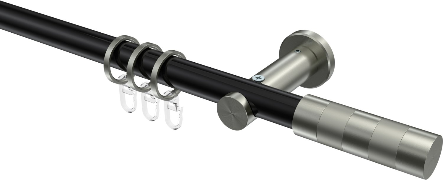 Gardinenstangen aus Metall in 20 mm Ø, 1-läufig, Modell PLATON - Mavell Schwarz / Edelstahl-Optik