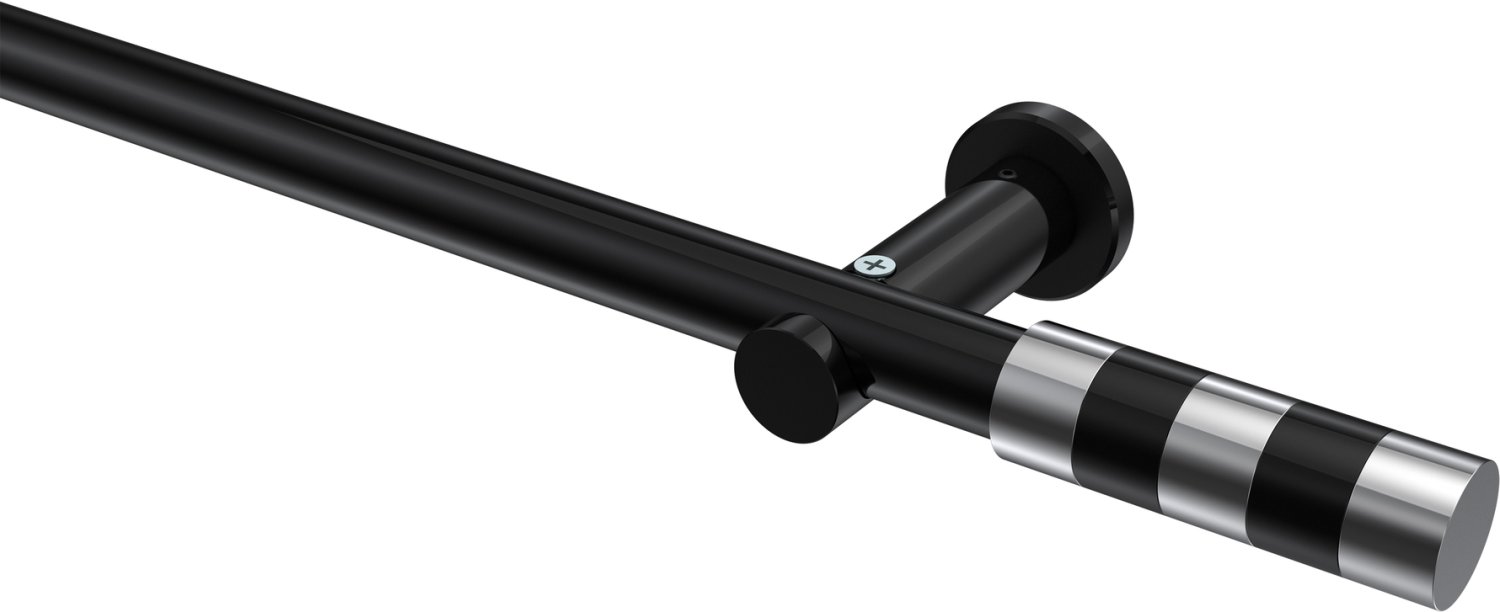 Gardinenstangen aus Metall in 20 mm Ø, 1-läufig, Modell PLATON - Mavell Schwarz (ohne Ringe)