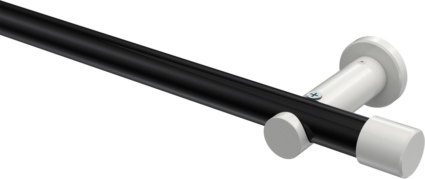 Gardinenstangen aus Metall in 20 mm Ø, 1-läufig, Modell PLATON - Santo Schwarz / Weiß (ohne Ringe)