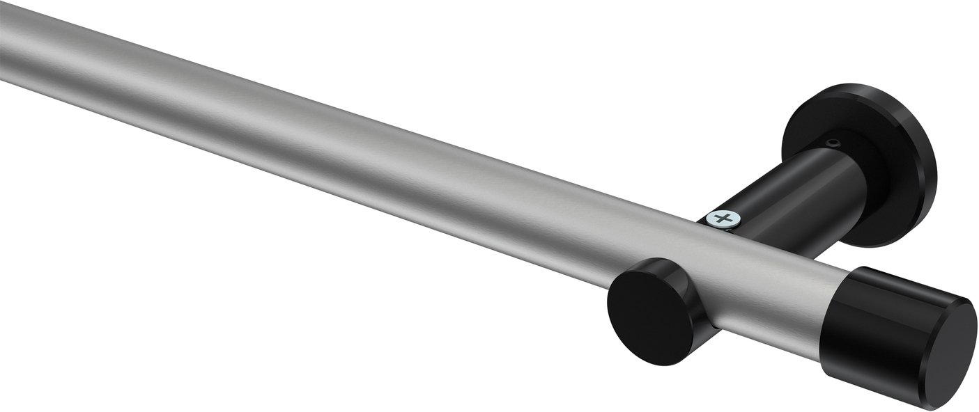 Gardinenstangen aus Metall in 20 mm Ø, 1-läufig, Modell PLATON - Santo Silbergrau / Schwarz (ohne Ringe)