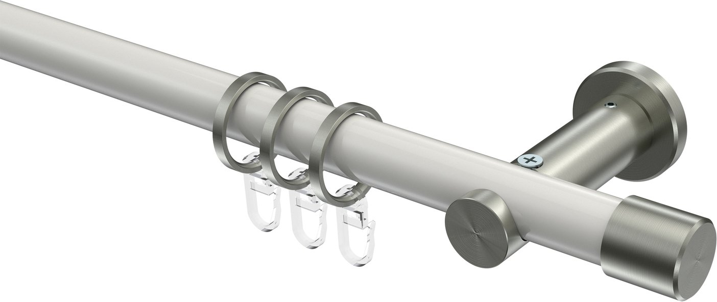 Gardinenstangen aus Metall in 20 mm Ø, 1-läufig, Modell PLATON - Santo Weiß / Edelstahl-Optik