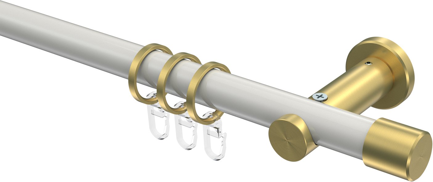 Gardinenstangen aus Metall in 20 mm Ø, 1-läufig, Modell PLATON - Santo Weiß / Messing-Optik