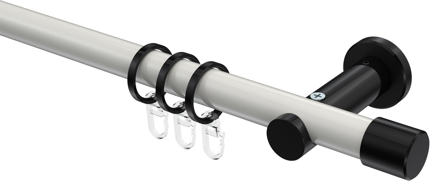 Gardinenstangen aus Metall in 20 mm Ø, 1-läufig, Modell PLATON - Santo Weiß / Schwarz