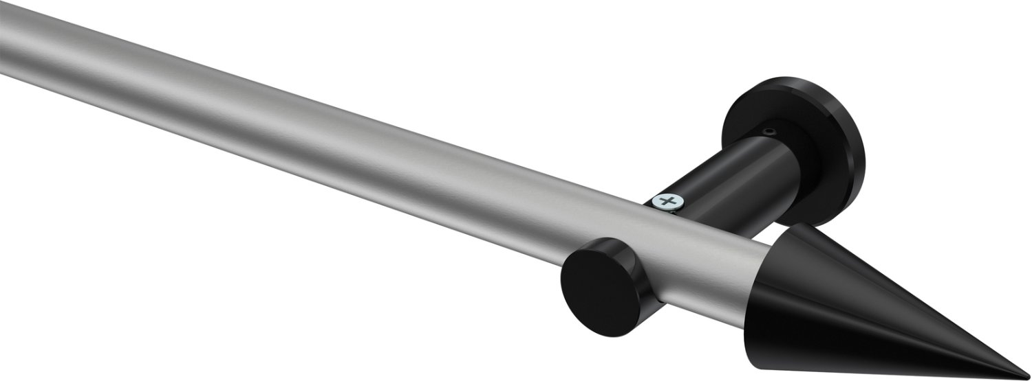 Gardinenstangen aus Metall in 20 mm Ø, 1-läufig, Modell PLATON - Savio Silbergrau / Schwarz (ohne Ringe)