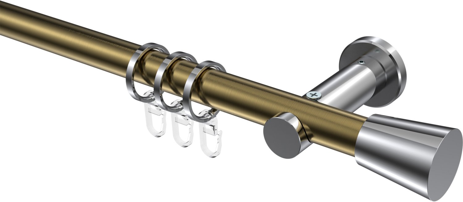 Gardinenstangen aus Metall in 20 mm Ø, 1-läufig, Modell PLATON - Sitra Messing Antik / Chrom