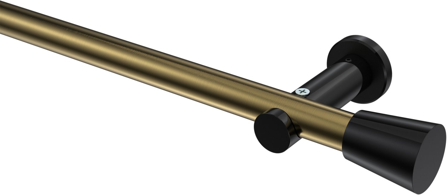 Gardinenstangen aus Metall in 20 mm Ø, 1-läufig, Modell PLATON - Sitra Messing Antik / Schwarz (ohne Ringe)