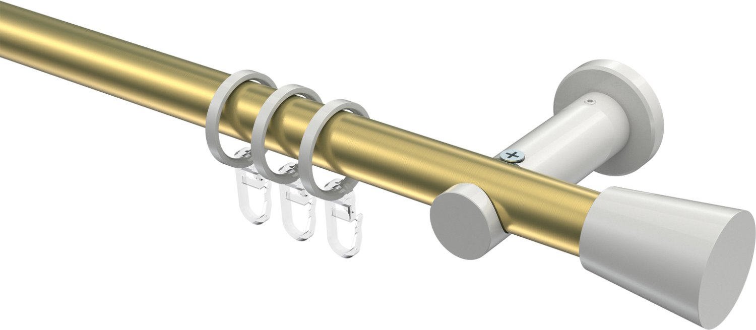 Gardinenstangen aus Metall in 20 mm Ø, 1-läufig, Modell PLATON - Sitra Messing-Optik / Weiß