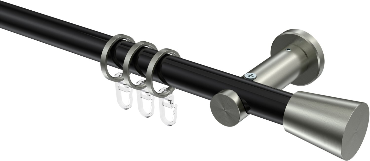 Gardinenstangen aus Metall in 20 mm Ø, 1-läufig, Modell PLATON - Sitra Schwarz / Edelstahl-Optik