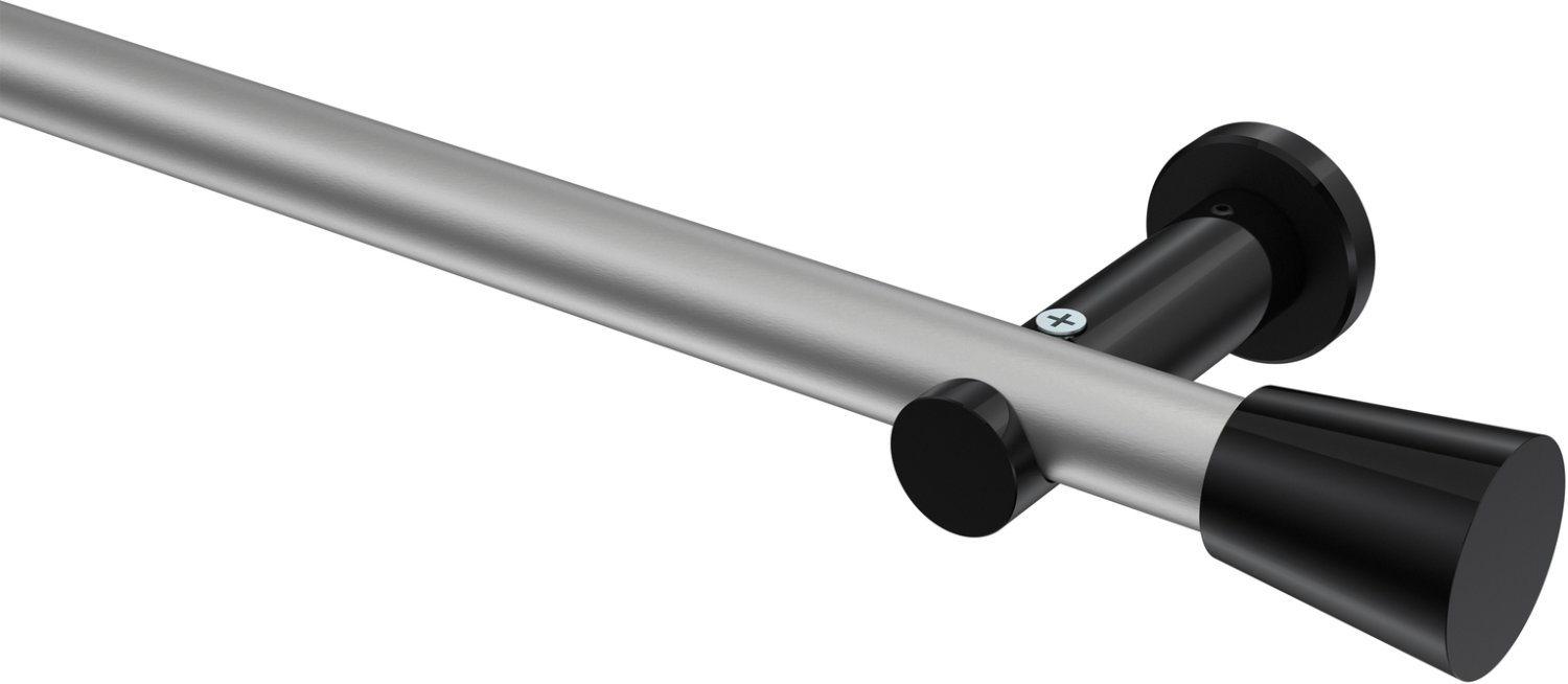 Gardinenstangen aus Metall in 20 mm Ø, 1-läufig, Modell PLATON - Sitra Silbergrau / Schwarz (ohne Ringe)