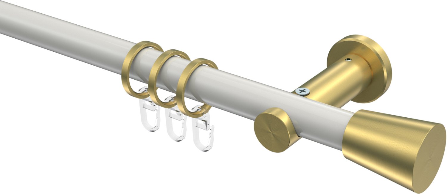 Gardinenstangen aus Metall in 20 mm Ø, 1-läufig, Modell PLATON - Sitra Weiß / Messing-Optik