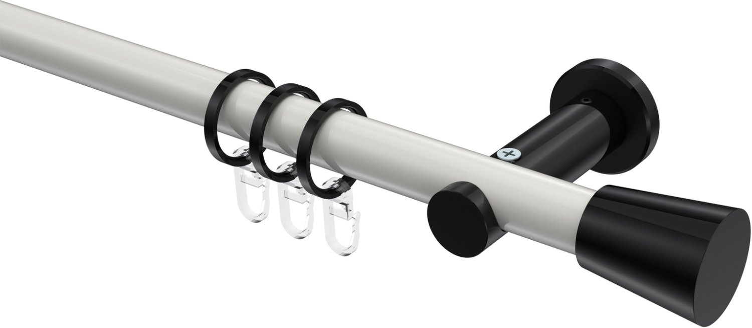 Gardinenstangen aus Metall in 20 mm Ø, 1-läufig, Modell PLATON - Sitra Weiß / Schwarz