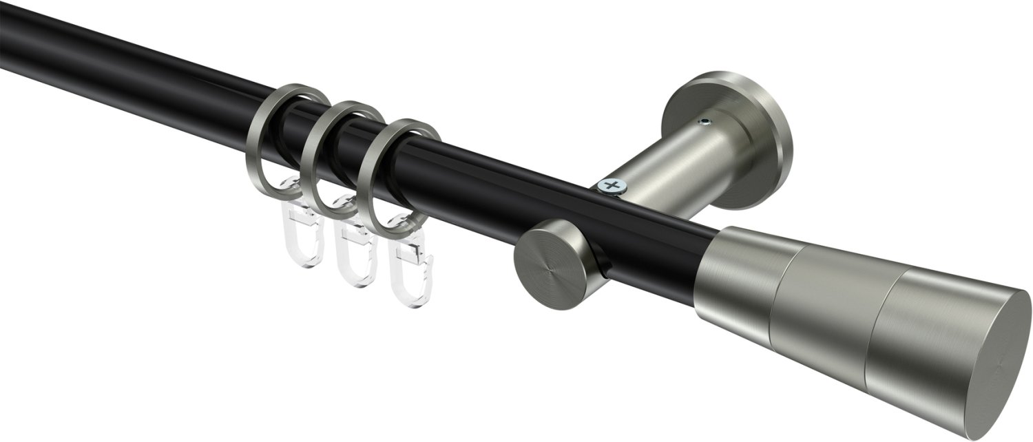Gardinenstangen aus Metall in 20 mm Ø, 1-läufig, Modell PLATON - Tanara Schwarz / Edelstahl-Optik