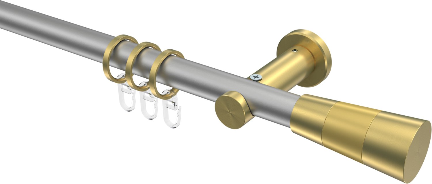 Gardinenstangen aus Metall in 20 mm Ø, 1-läufig, Modell PLATON - Tanara Silbergrau / Messing-Optik