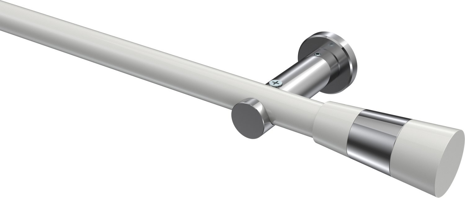 Gardinenstangen aus Metall in 20 mm Ø, 1-läufig, Modell PLATON - Tanara Weiß / Chrom (ohne Ringe)