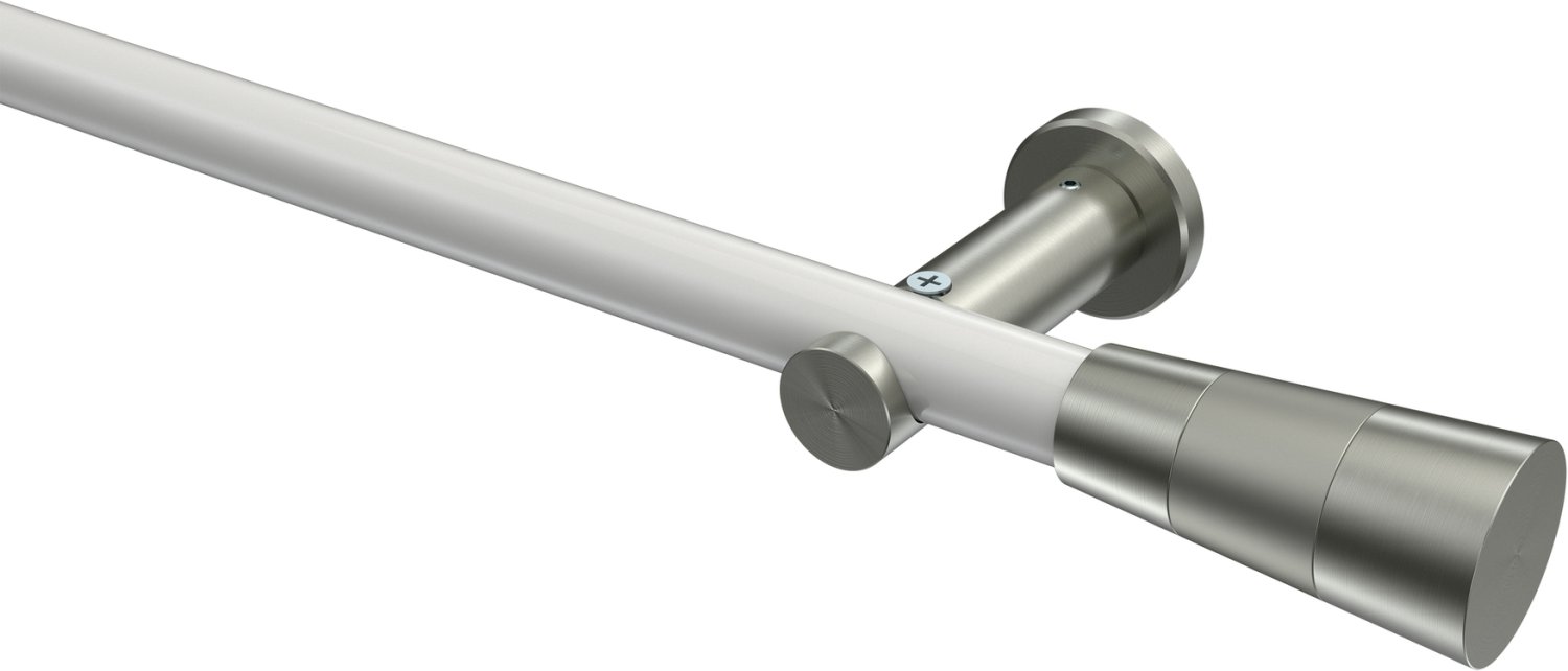 Gardinenstangen aus Metall in 20 mm Ø, 1-läufig, Modell PLATON - Tanara Weiß / Edelstahl-Optik (ohne Ringe)