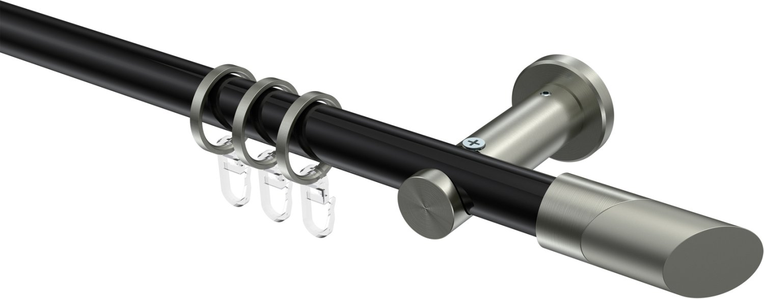 Informationen zu Gardinenstange Metall 20 mm Ø PLATON - Verano Schwarz / Edelstahl-Optik: