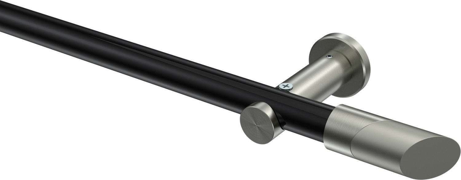 Gardinenstangen aus Metall in 20 mm Ø, 1-läufig, Modell PLATON - Verano Schwarz / Edelstahl-Optik (ohne Ringe)