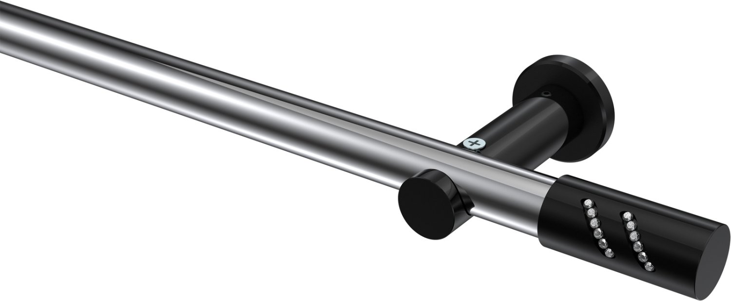 Gardinenstangen aus Metall in 20 mm Ø, 1-läufig, Modell PLATON - Zoena Chrom / Schwarz (ohne Ringe)