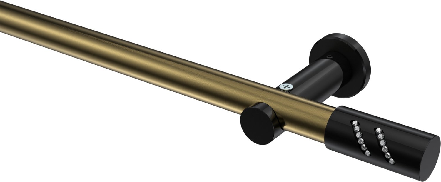 Gardinenstangen aus Metall in 20 mm Ø, 1-läufig, Modell PLATON - Zoena Messing Antik / Schwarz (ohne Ringe)