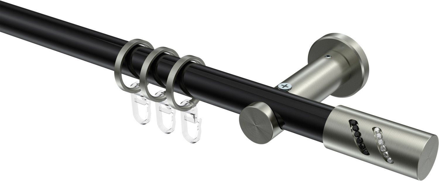 Gardinenstangen aus Metall in 20 mm Ø, 1-läufig, Modell PLATON - Zoena Schwarz / Edelstahl-Optik