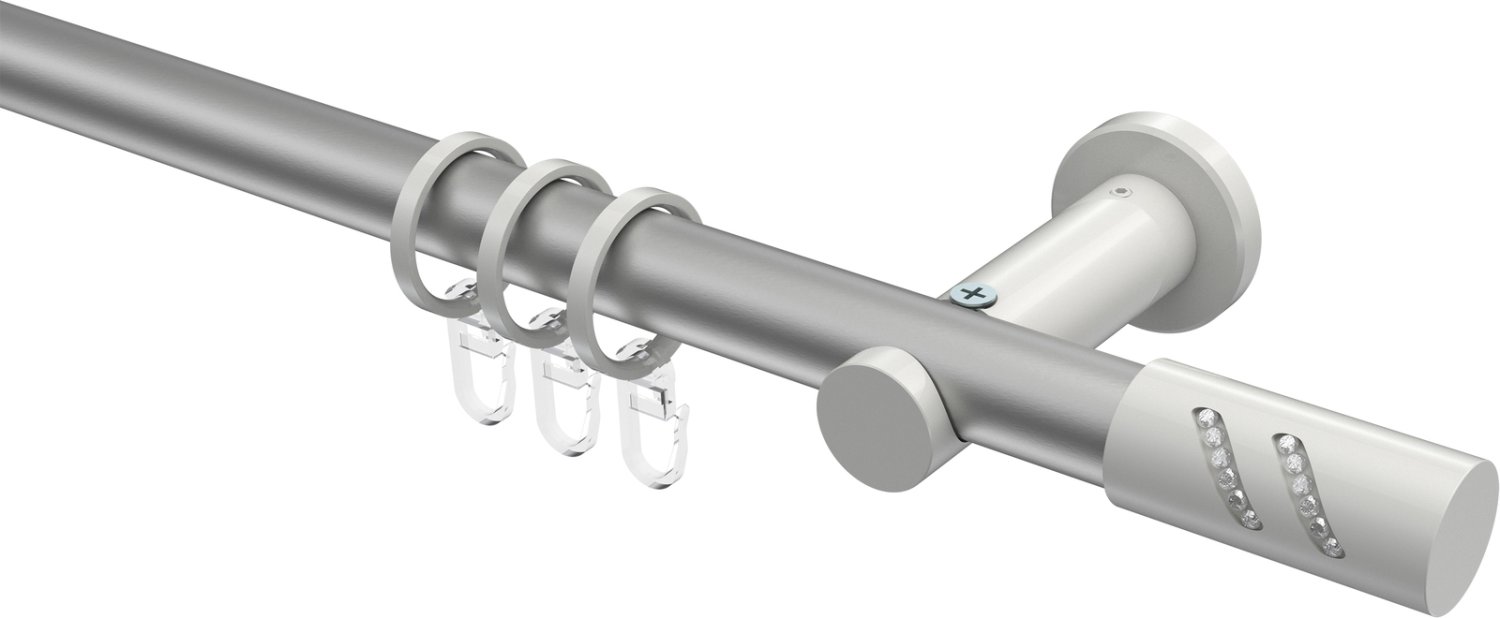 Gardinenstangen aus Metall in 20 mm Ø, 1-läufig, Modell PLATON - Zoena Silbergrau / Weiß