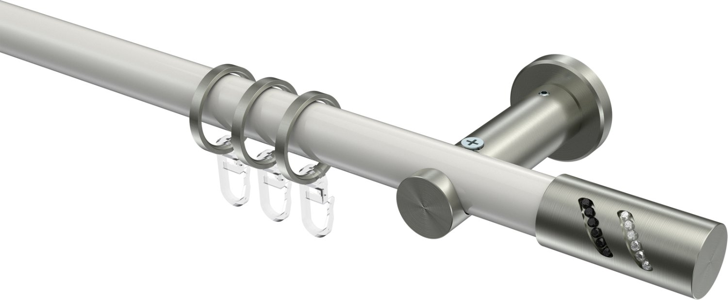 Gardinenstangen aus Metall in 20 mm Ø, 1-läufig, Modell PLATON - Zoena Weiß / Edelstahl-Optik