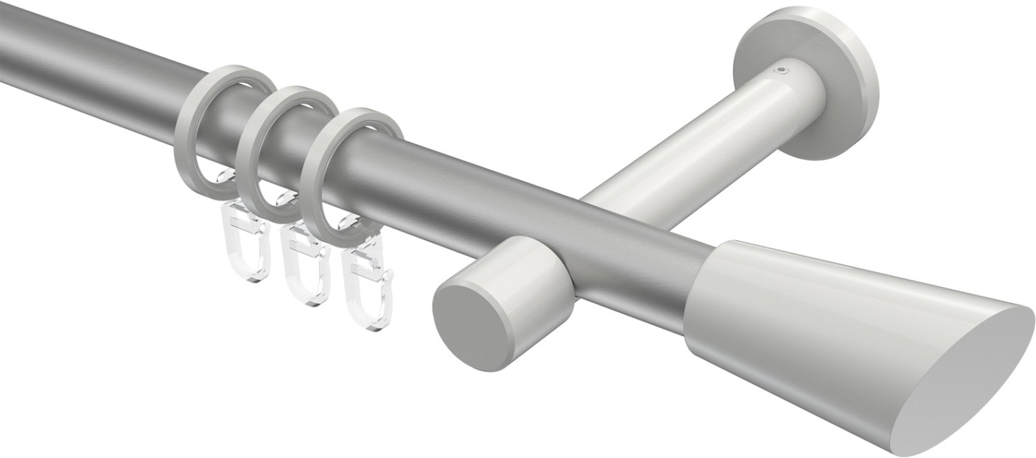 Gardinenstangen aus Metall in 20 mm Ø, 1-läufig, Modell PRESTIGE - Bento Silbergrau / Weiß
