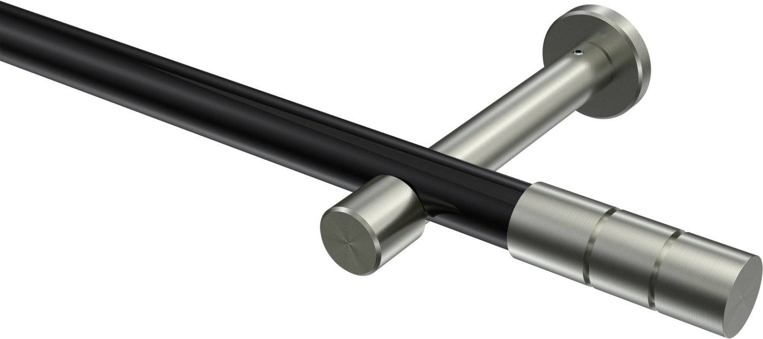 Informationen zu Gardinenstange Metall 20 mm Ø PRESTIGE - Elanto Schwarz / Edelstahl-Optik (ohne Ringe):