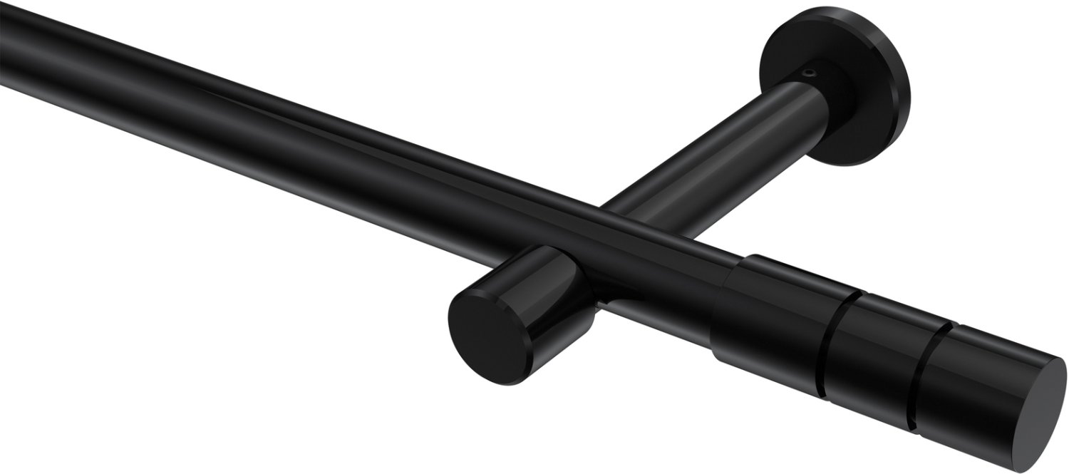Gardinenstangen aus Metall in 20 mm Ø, 1-läufig, Modell PRESTIGE - Elanto Schwarz (ohne Ringe)