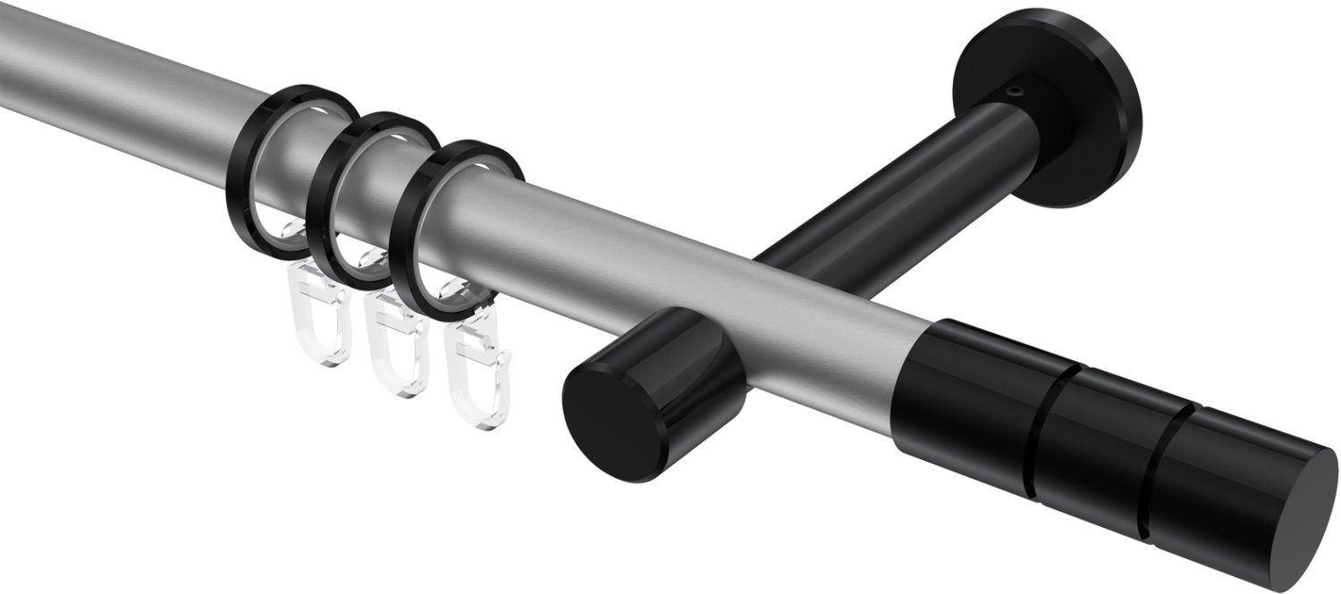 Gardinenstangen aus Metall in 20 mm Ø, 1-läufig, Modell PRESTIGE - Elanto Silbergrau / Schwarz