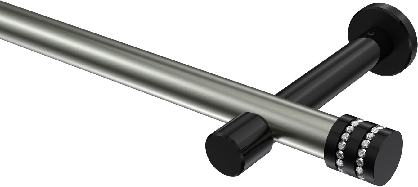 Gardinenstangen aus Metall in 20 mm Ø, 1-läufig, Modell PRESTIGE - Estana Edelstahl-Optik / Schwarz (ohne Ringe)