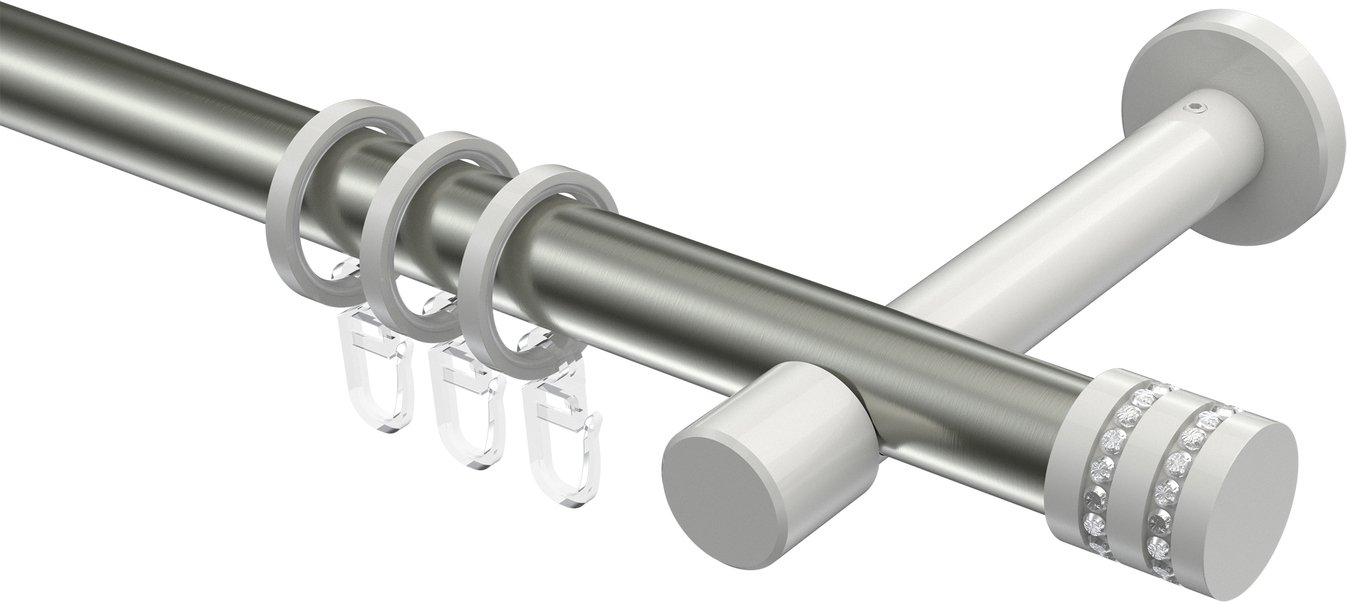 Gardinenstangen aus Metall in 20 mm Ø, 1-läufig, Modell PRESTIGE - Estana Edelstahl-Optik / Weiß