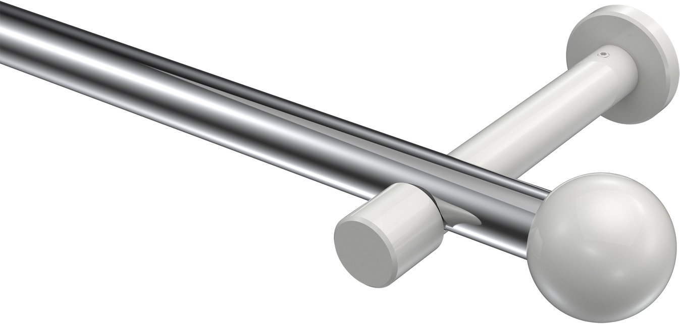 Informationen zu Gardinenstange Metall 20 mm Ø PRESTIGE - Luino Chrom / Weiß (ohne Ringe):