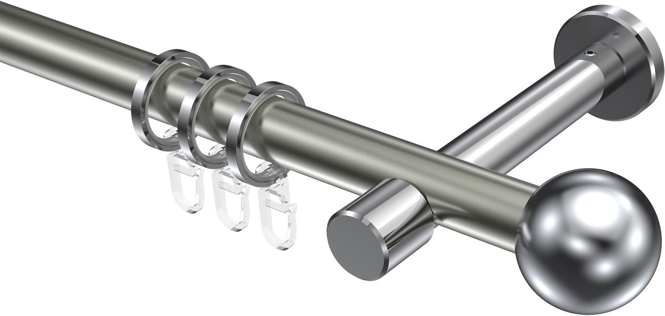 Gardinenstangen aus Metall in 20 mm Ø, 1-läufig, Modell PRESTIGE - Luino Edelstahl-Optik / Chrom