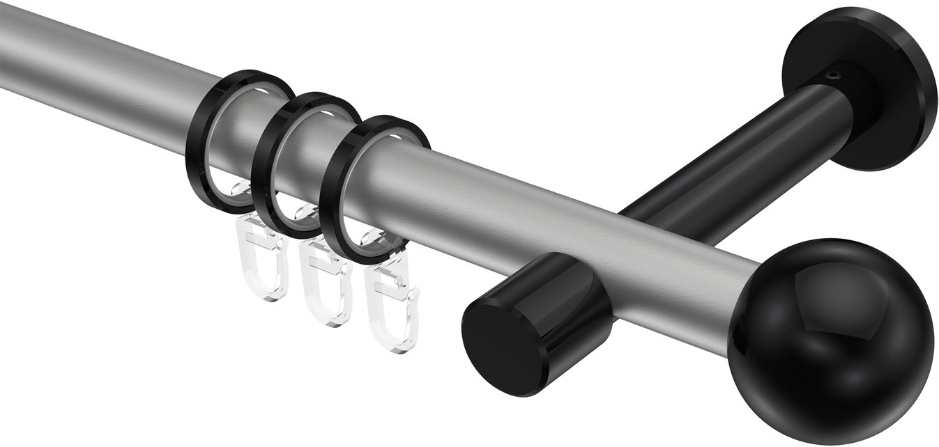 Gardinenstangen aus Metall in 20 mm Ø, 1-läufig, Modell PRESTIGE - Luino Silbergrau / Schwarz