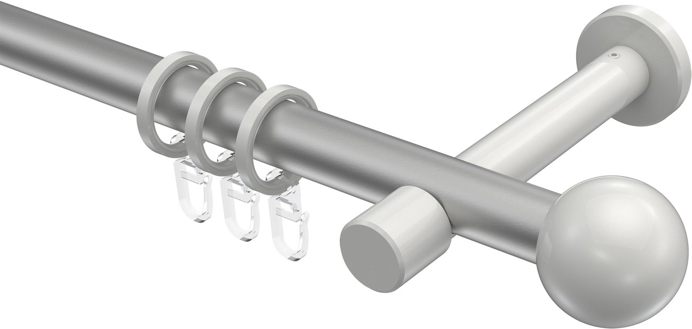 Gardinenstangen aus Metall in 20 mm Ø, 1-läufig, Modell PRESTIGE - Luino Silbergrau / Weiß