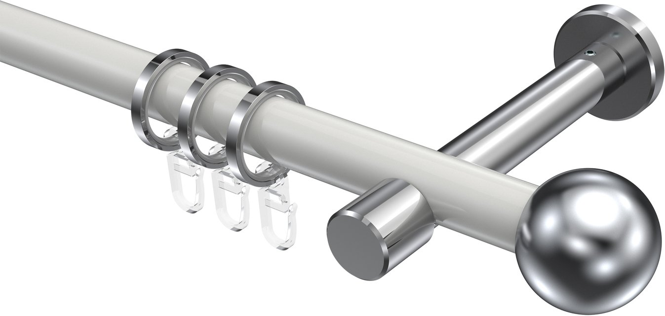 Gardinenstangen aus Metall in 20 mm Ø, 1-läufig, Modell PRESTIGE - Luino Weiß / Chrom
