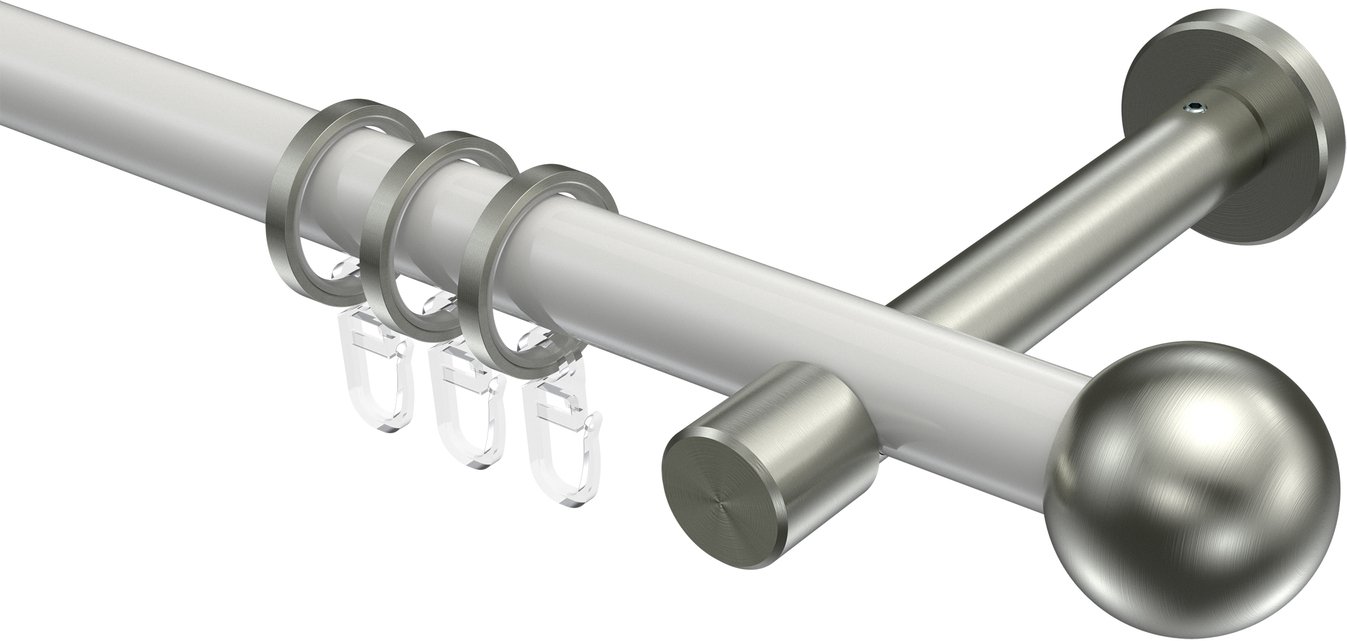 Informationen zu Gardinenstange Metall 20 mm Ø PRESTIGE - Luino Weiß / Edelstahl-Optik: