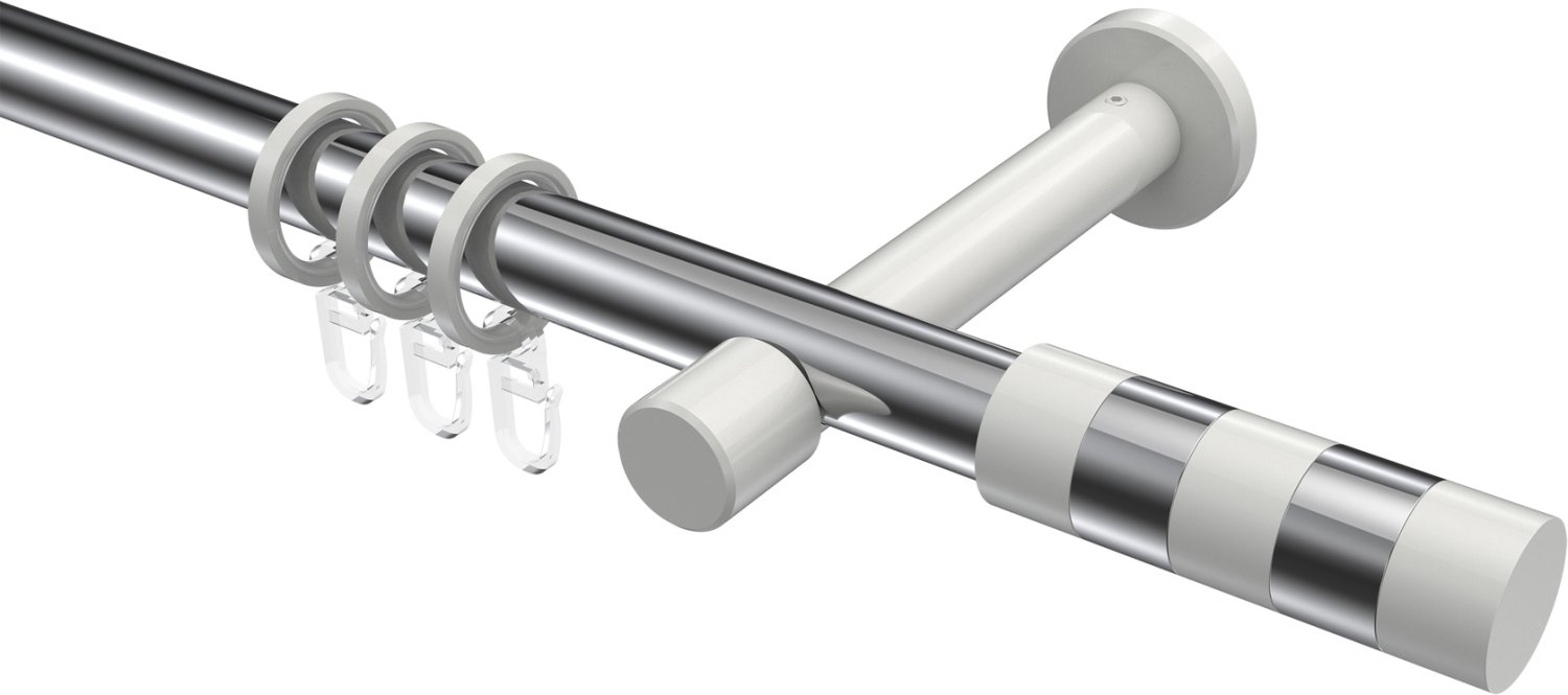 Gardinenstangen aus Metall in 20 mm Ø, 1-läufig, Modell PRESTIGE - Mavell Chrom / Weiß
