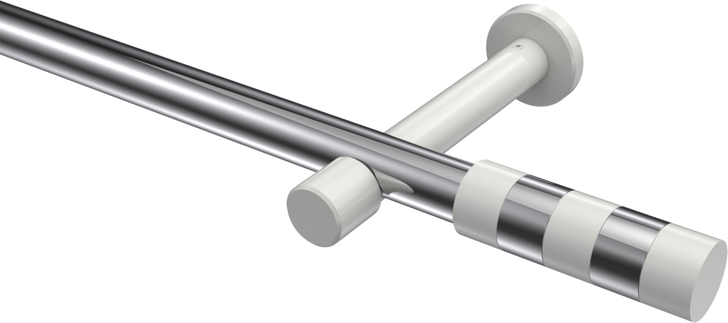 Gardinenstangen aus Metall in 20 mm Ø, 1-läufig, Modell PRESTIGE - Mavell Chrom / Weiß (ohne Ringe)