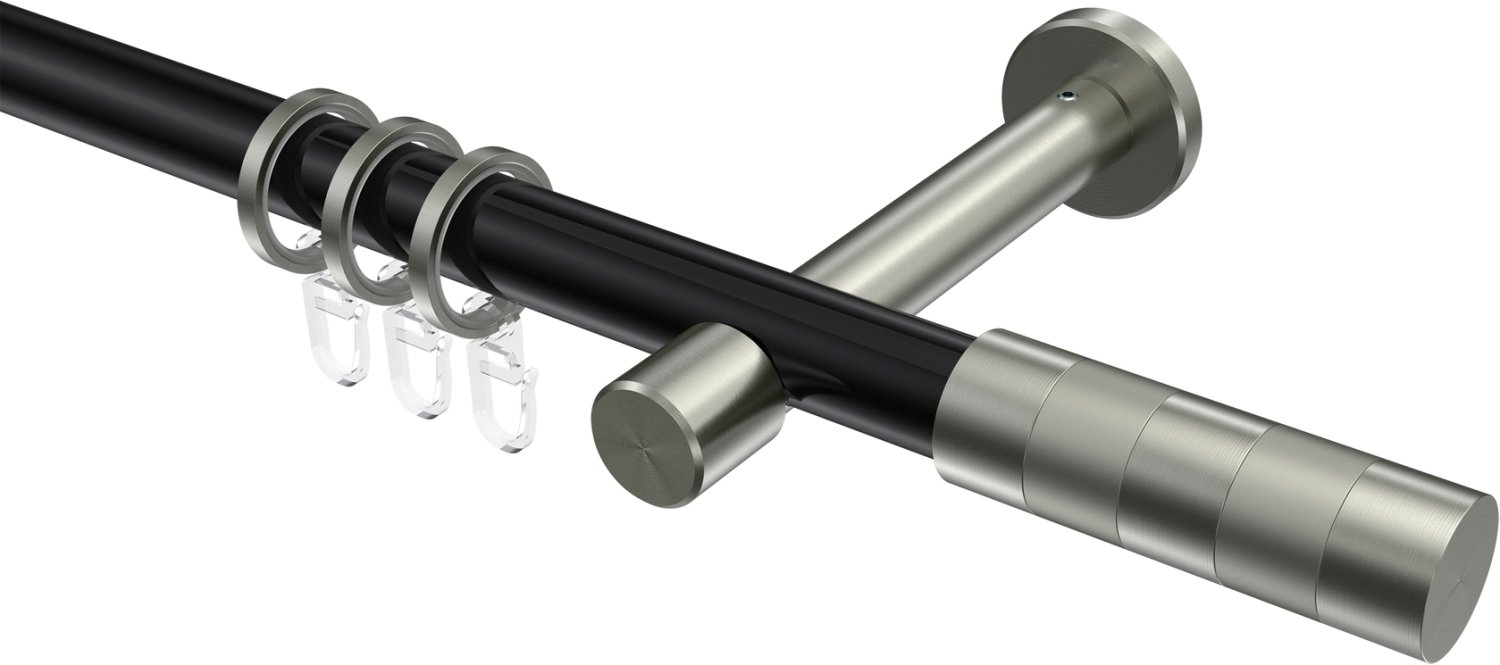 Informationen zu Gardinenstange Metall 20 mm Ø PRESTIGE - Mavell Schwarz / Edelstahl-Optik: