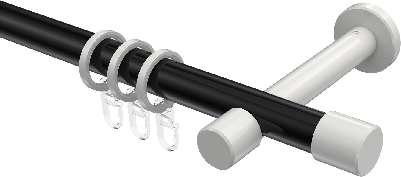 Gardinenstangen aus Metall in 20 mm Ø, 1-läufig, Modell PRESTIGE - Santo Schwarz / Weiß