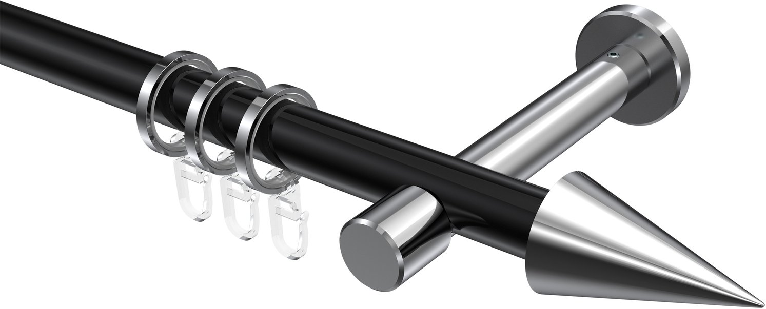 Gardinenstangen aus Metall in 20 mm Ø, 1-läufig, Modell PRESTIGE - Savio Schwarz / Chrom