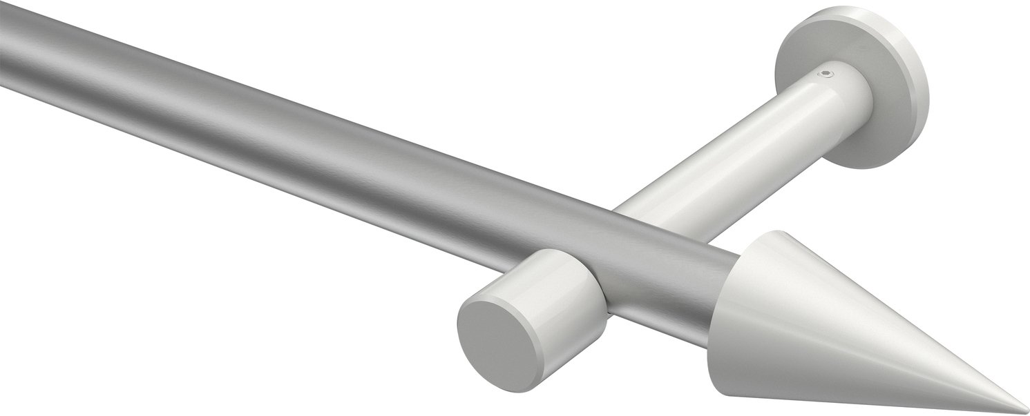 Gardinenstangen aus Metall in 20 mm Ø, 1-läufig, Modell PRESTIGE - Savio Silbergrau / Weiß (ohne Ringe)