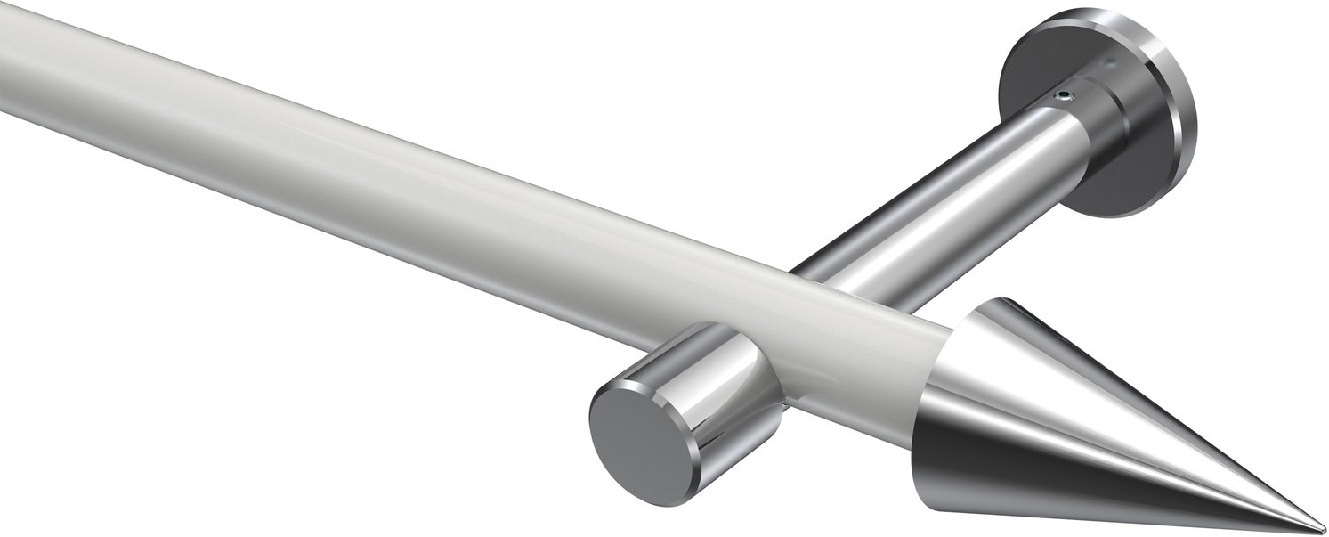 Gardinenstangen aus Metall in 20 mm Ø, 1-läufig, Modell PRESTIGE - Savio Weiß / Chrom (ohne Ringe)