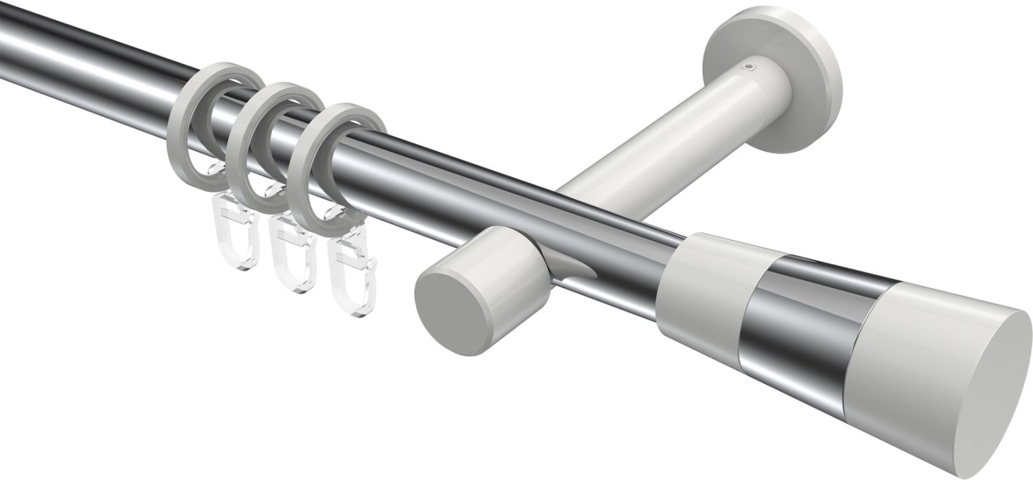 Gardinenstangen aus Metall in 20 mm Ø, 1-läufig, Modell PRESTIGE - Tanara Chrom / Weiß