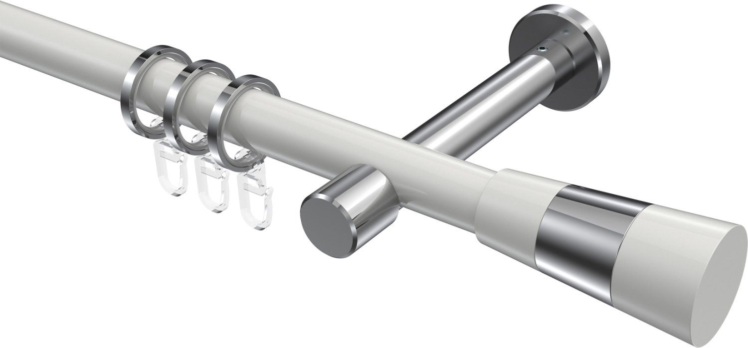 Gardinenstangen aus Metall in 20 mm Ø, 1-läufig, Modell PRESTIGE - Tanara Weiß / Chrom