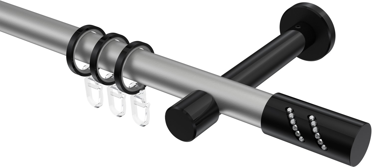 Gardinenstangen aus Metall in 20 mm Ø, 1-läufig, Modell PRESTIGE - Zoena Silbergrau / Schwarz