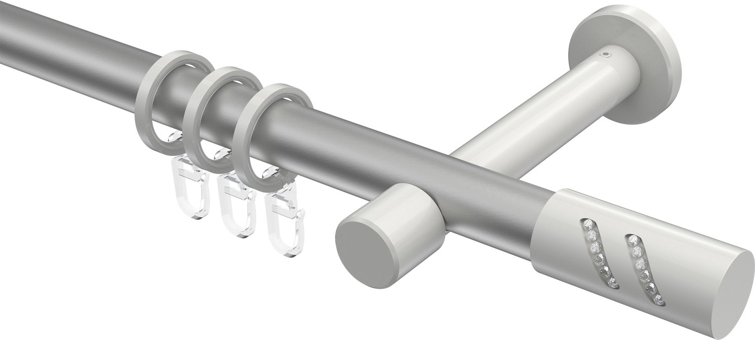 Gardinenstangen aus Metall in 20 mm Ø, 1-läufig, Modell PRESTIGE - Zoena Silbergrau / Weiß