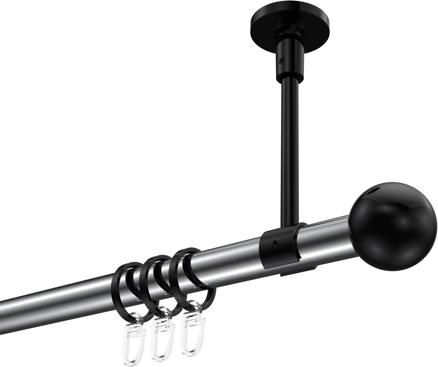 Gardinenstangen aus Metall in 20 mm Ø, 1-läufig, Modell SONETTE - Luino Chrom / Schwarz